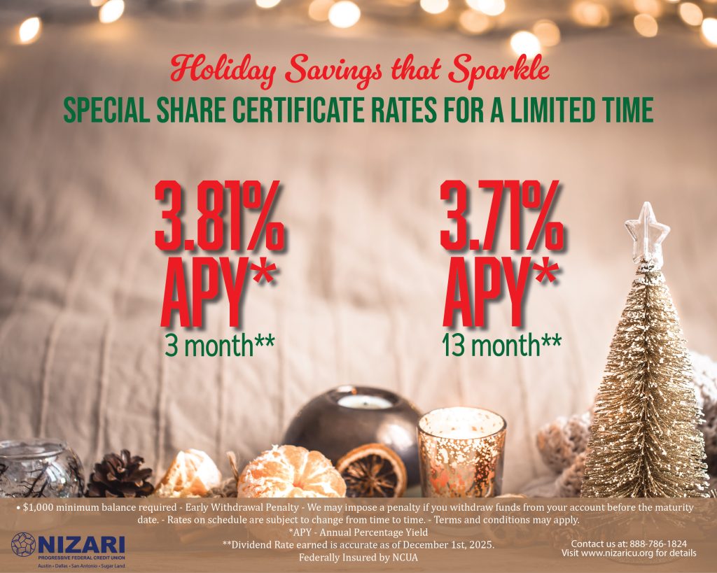 These rewards are not valid with any other offers or promotions. Nizari Federal Credit Union reserves the right to cancel the promotion at any time.