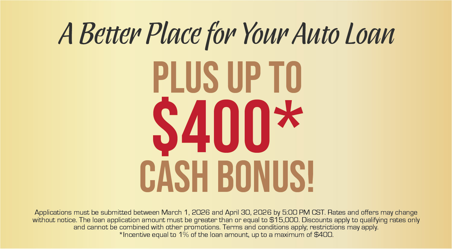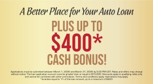Auto Loan- Get up to 400* Cash Bonus!
