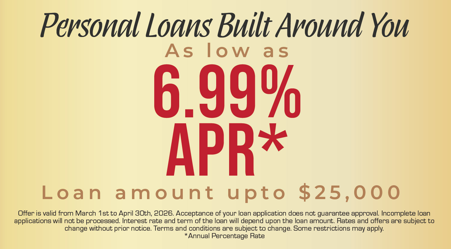 * Maximum term up to 84 months for a loan amount greater than $25,000