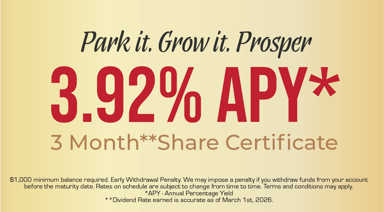 *APY – Annual Percentage Yield **Dividend Rate earned is accurate as of March 1st, 2026.