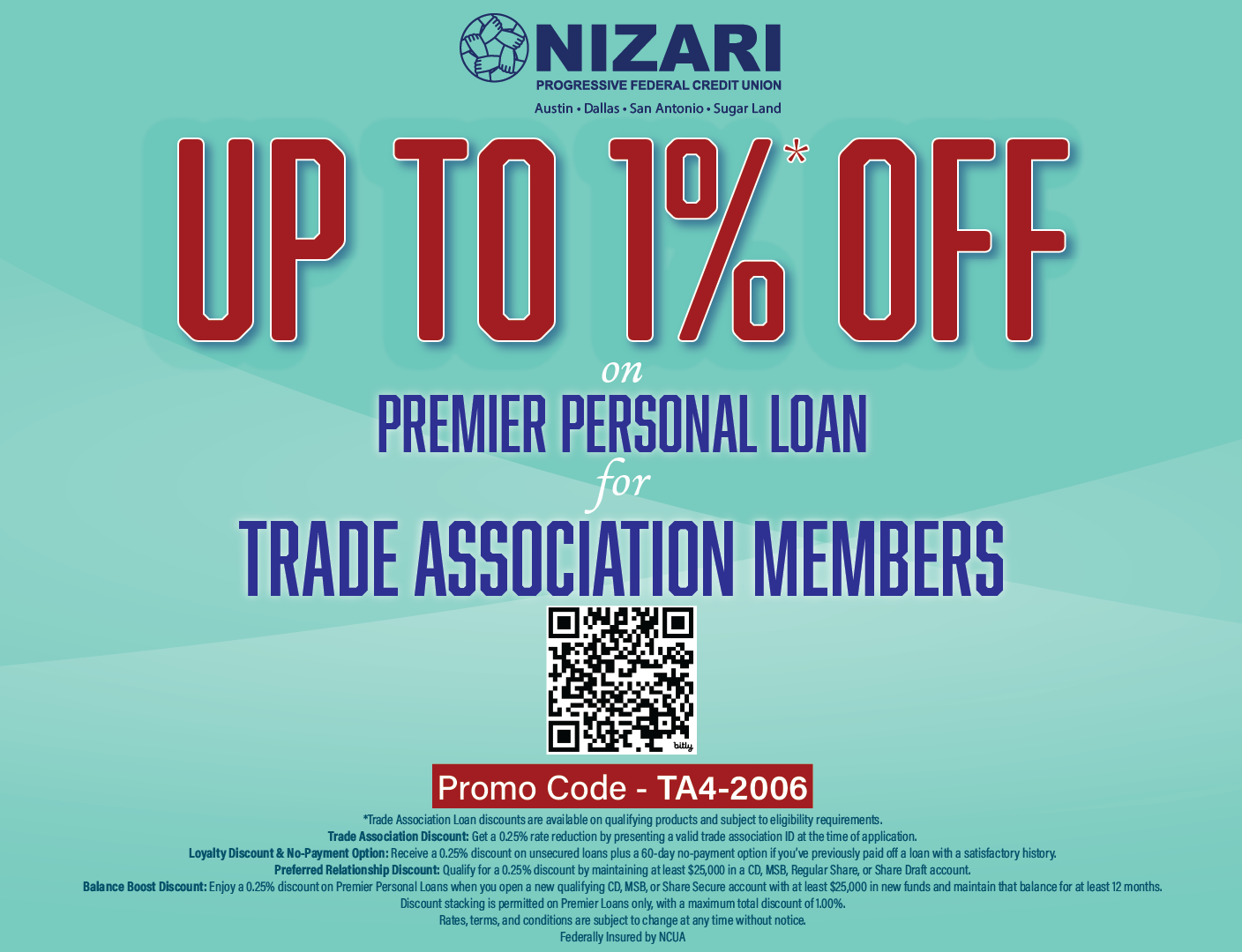 • To qualify for the loan promotion, a loan must be from another financial institution or a new loan. Existing Nizari loan refinances do not qualify for the